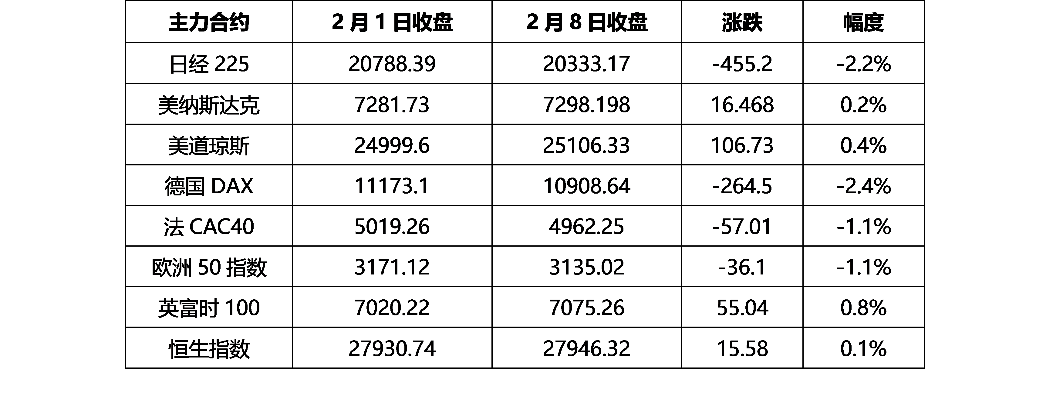 春節(jié)期間全球主要股指變動(dòng)對比
