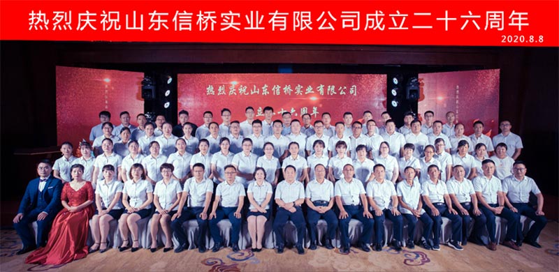 2020年8月8日,山東信橋?qū)崢I(yè)有限公司二十六周年慶典在泰安帝苑酒店隆重舉行。各路榜樣精英、以及二十六年來給予信橋厚愛的各級領(lǐng)導、各位同仁、新老朋友在這里歡聚一堂,與為公司付出辛勤勞動的全體員工一起,分享屬于大家的光榮與快樂!