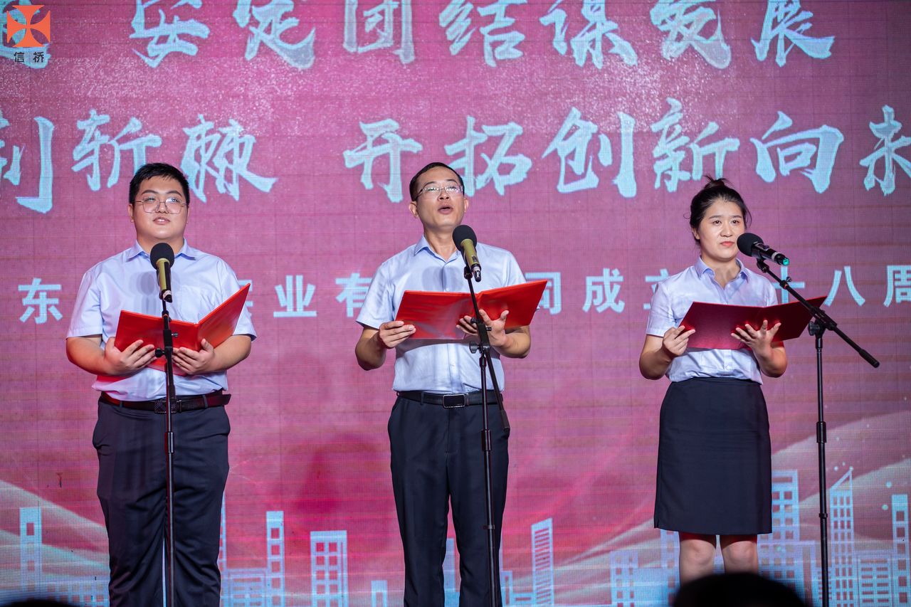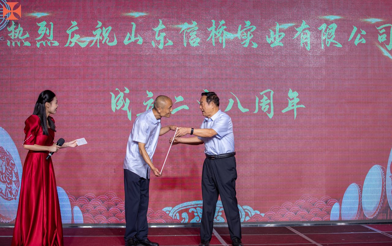 歲月如歌,風霜如畫,二十八年彈指一揮間,山東信橋實業(yè)有限公司(以下簡稱山東信橋)迎來了二十八周歲的生日。二十八年來,信橋人在激烈的市場競爭中奮力拼搏、砥礪前行,接受了市場風風雨雨的洗禮,取得了累累碩果。為了慶祝這一特殊的日子,2022年8月8日,以“激流勇進,安定團結謀發(fā)展 披荊斬棘,開拓創(chuàng)新向未來”為主題的山東信橋二十八周年慶典活動在寶盛大酒店舉行。