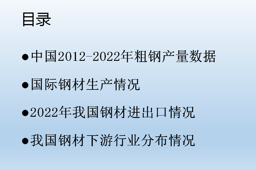 •我國(guó)現(xiàn)階段已經(jīng)初步實(shí)現(xiàn)城鎮(zhèn)化的建設(shè),隨著房地產(chǎn)需求的下滑,我們普通鋼材很難有一個(gè)大的增量,但是我國(guó)的特殊鋼材還有很大的發(fā)展空間。結(jié)合國(guó)家鋼材發(fā)展現(xiàn)狀,我們也慢慢的理解公司制定“高端、國(guó)有、人無我有”政策的現(xiàn)實(shí)依據(jù),希望大家能出通過了解行業(yè)發(fā)展的方向,明確目標(biāo),開發(fā)客戶,更好的規(guī)劃自己的銷售,取得好的業(yè)績(jī)。