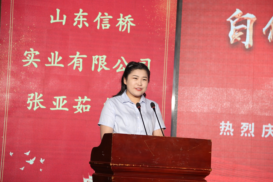 員工代表張亞茹講話,她是青年一代的代表,代表了從校園進(jìn)信橋的一代,感慨了信橋二十幾年的發(fā)展,感謝信橋給予她的財富和能力。