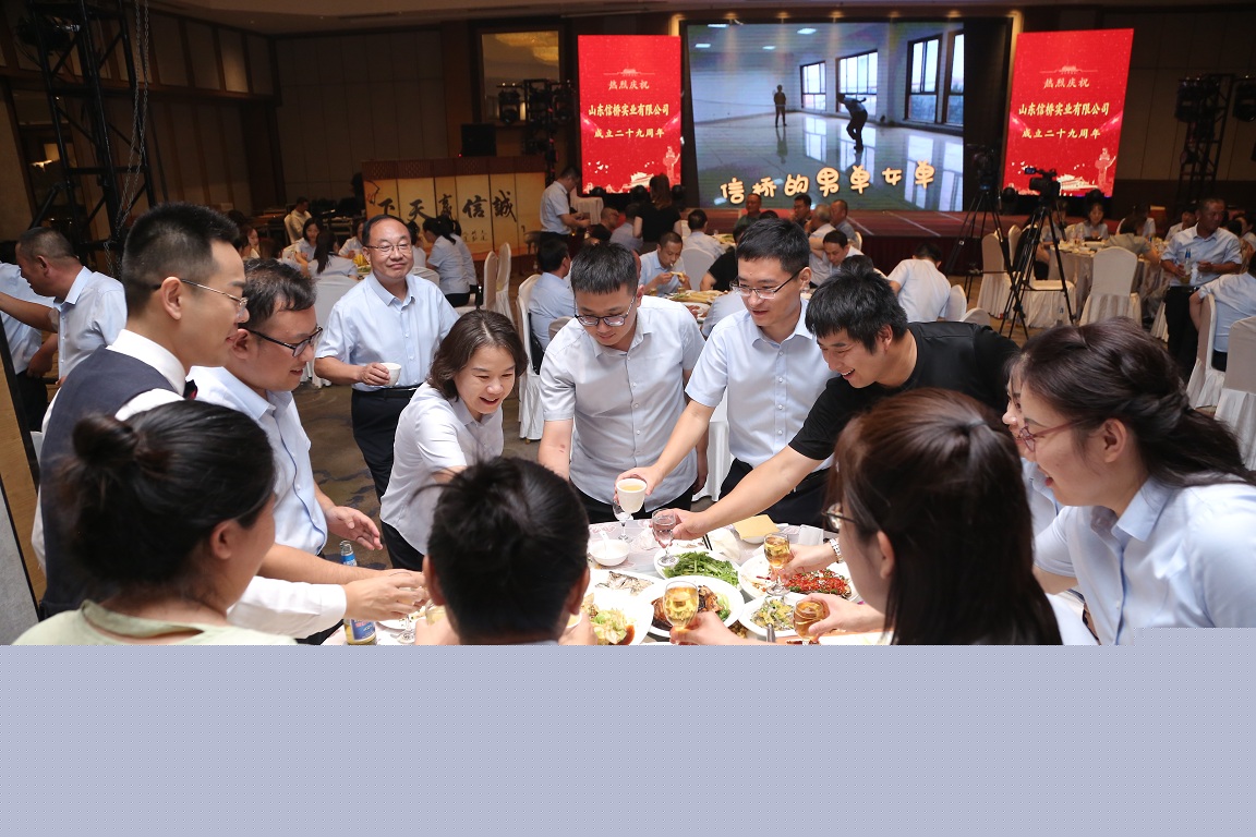 歲月如歌,風(fēng)霜如畫,二十九年彈指一揮間,山東信橋?qū)崢I(yè)有限公司(以下簡稱山東信橋)迎來了二十九周歲的生日。二十九年來,信橋人在激烈的市場競爭中奮力拼搏、砥礪前行,接受了市場風(fēng)風(fēng)雨雨的洗禮,取得了累累碩果。為了慶祝這一特殊的日子,2023年8月8日,以“激流勇進(jìn),安定團(tuán)結(jié)謀發(fā)展 披荊斬棘,開拓創(chuàng)新向未來”為主題的山東信橋二十九周年慶典活動在寶盛大酒店舉行。