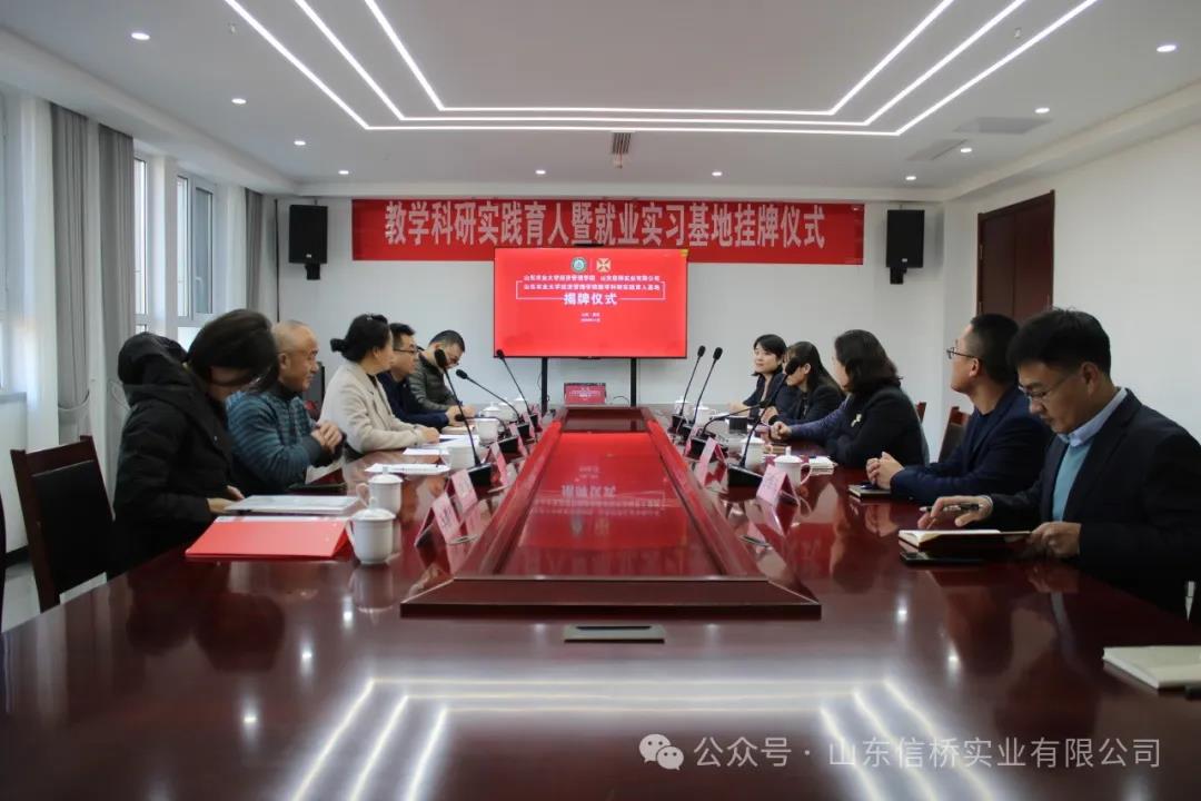 11.28日,山東農(nóng)業(yè)大學(xué)經(jīng)管學(xué)院與山東信橋?qū)崢I(yè)有限公司在信橋公司舉行了教學(xué)科研實踐育人暨就業(yè)實習(xí)基地掛牌儀式。